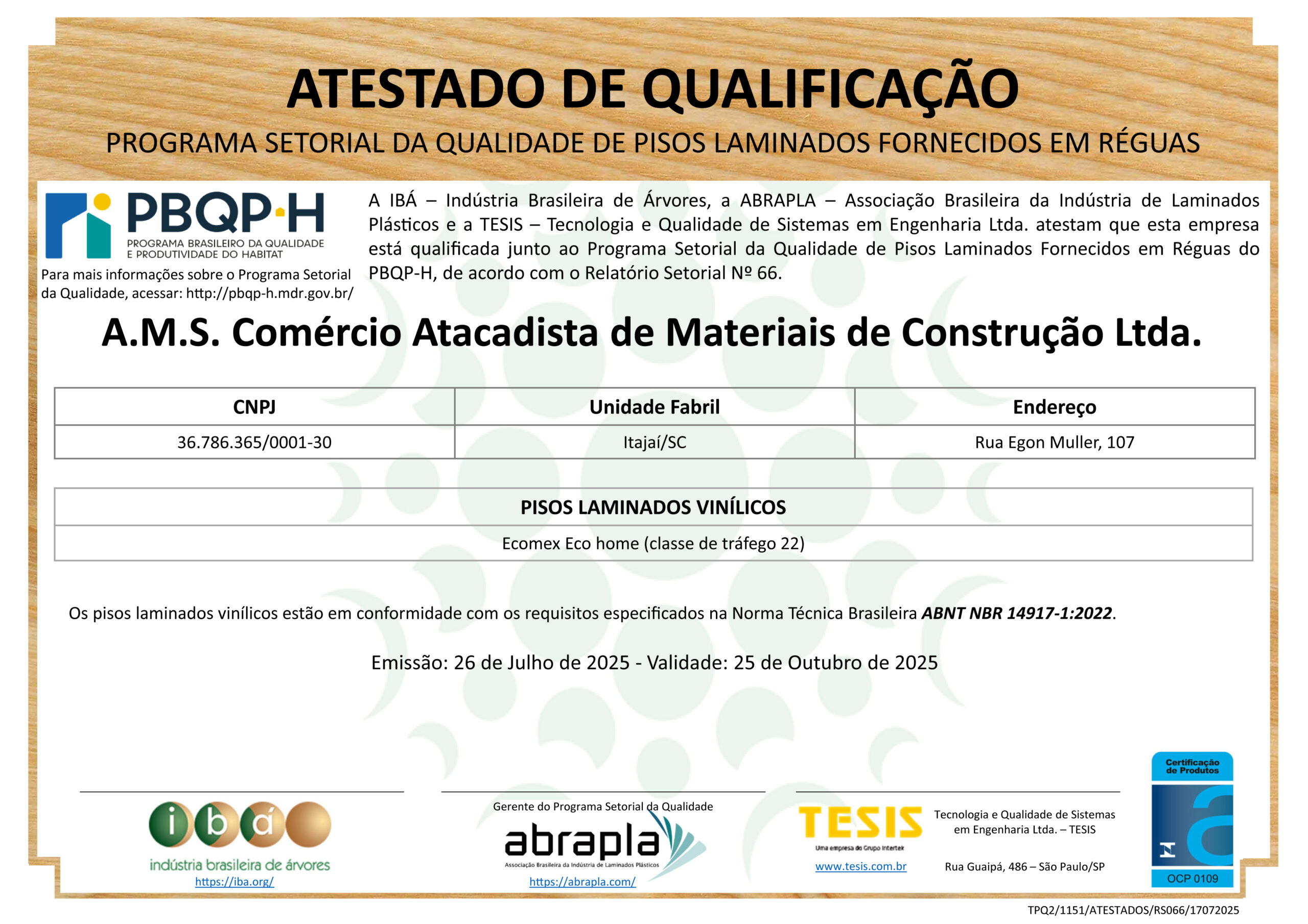 A Ecomex oferece a linha de Pisos Vinílicos SPC ECO PREMIUM, sendo um produto de qualidade superior no segmento. Fabricados com tecnologia avançada de última geração, fornecem uma performance diferenciada tanto para uso residencial quanto para aplicação em ambientes comerciais, atendendo a todas as normas, garantias e certificações internacionais de qualidade.